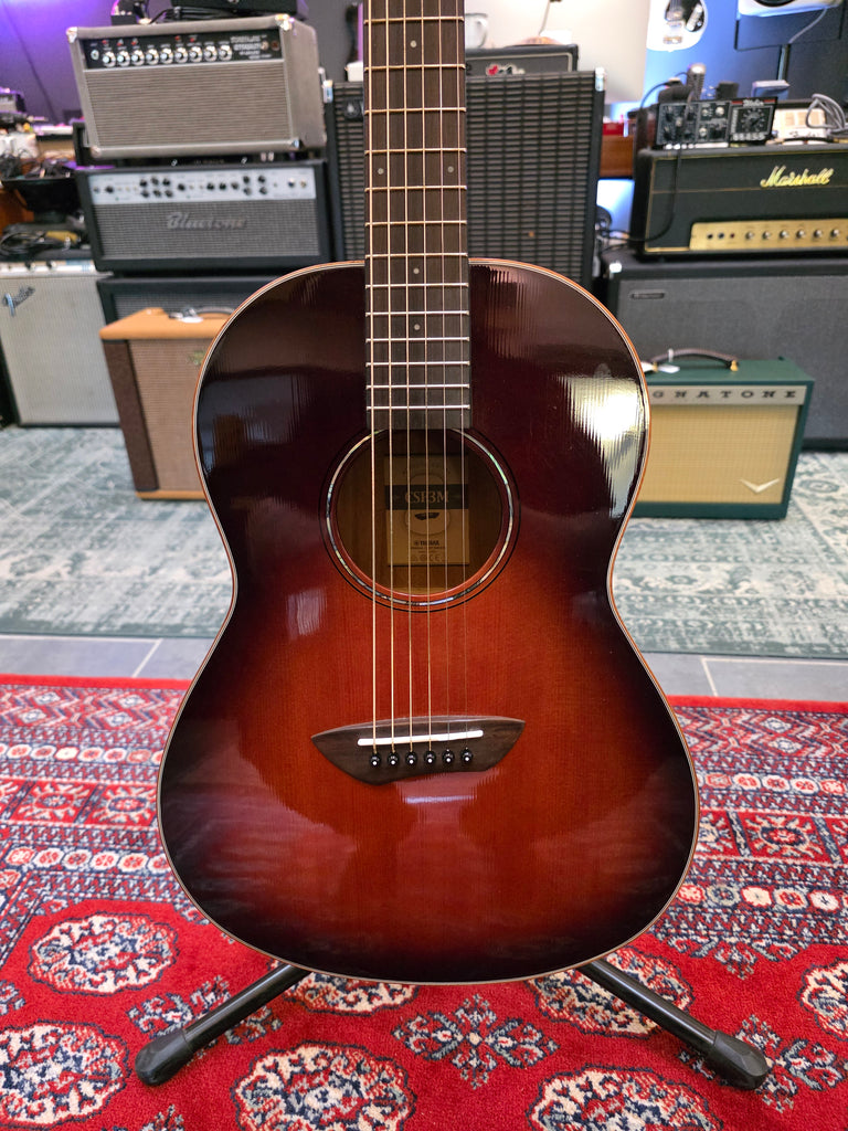 Nice and clean parlor guitar from Yamaha. Gig bag.