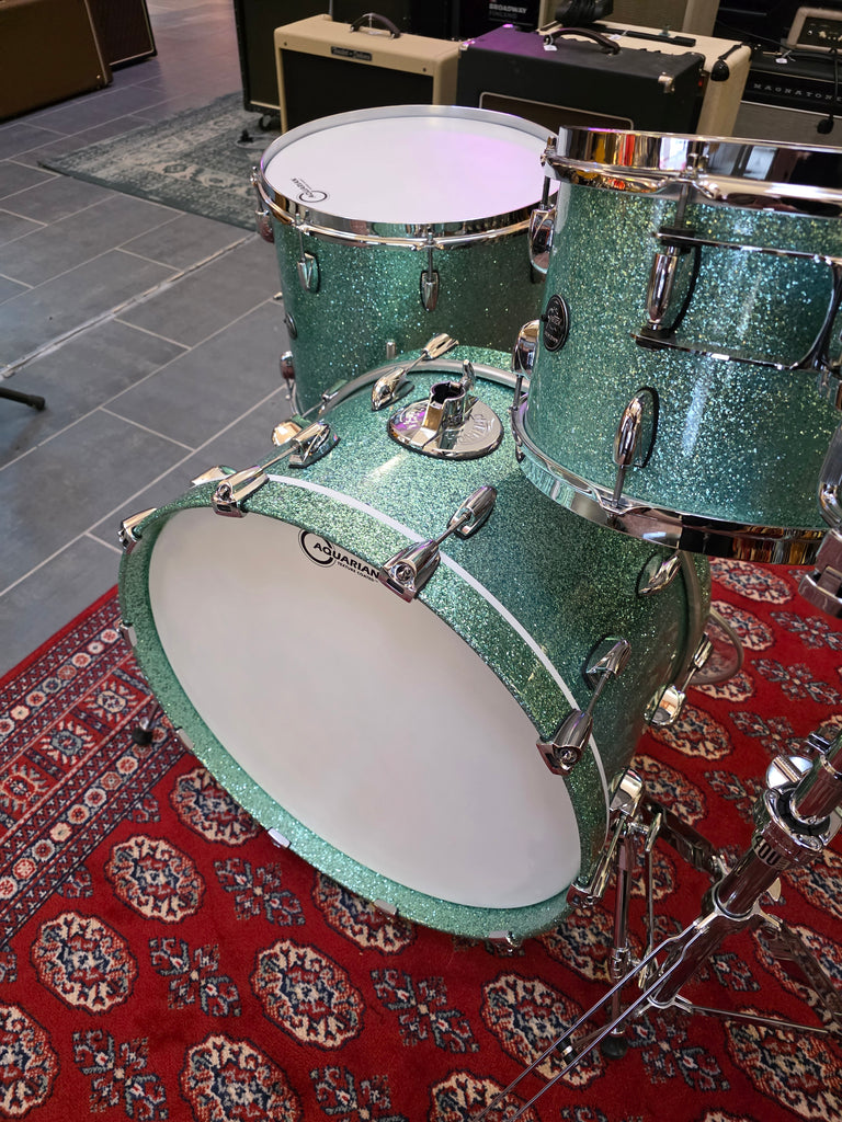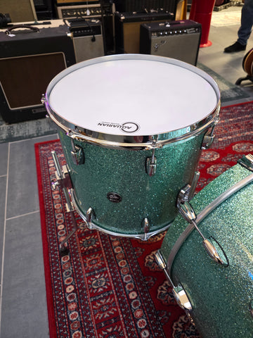 Nice shell set in good condition. These were not wrapped, but lacquer finish. Sonor tom stand included.