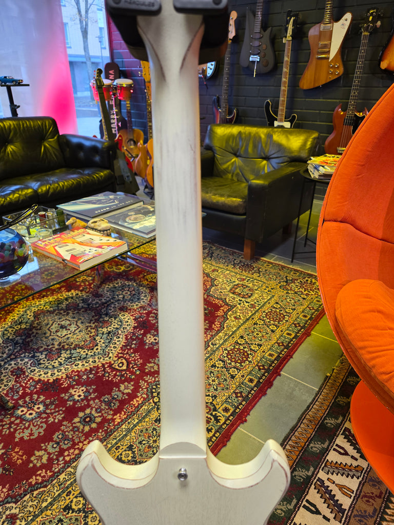 Rock icon Joan Jett's signature Gibson Melody Maker features either a worn white or black finish with a single exposed Burstbucker 3 humbucker. Joan's signature graces the truss rod cover.