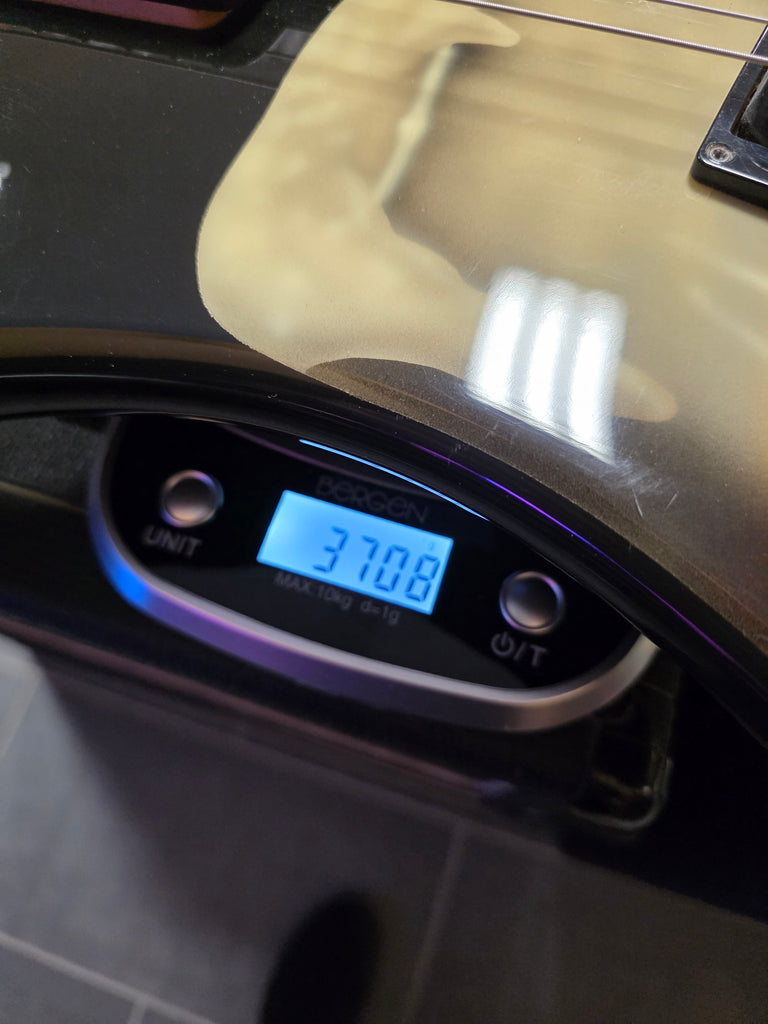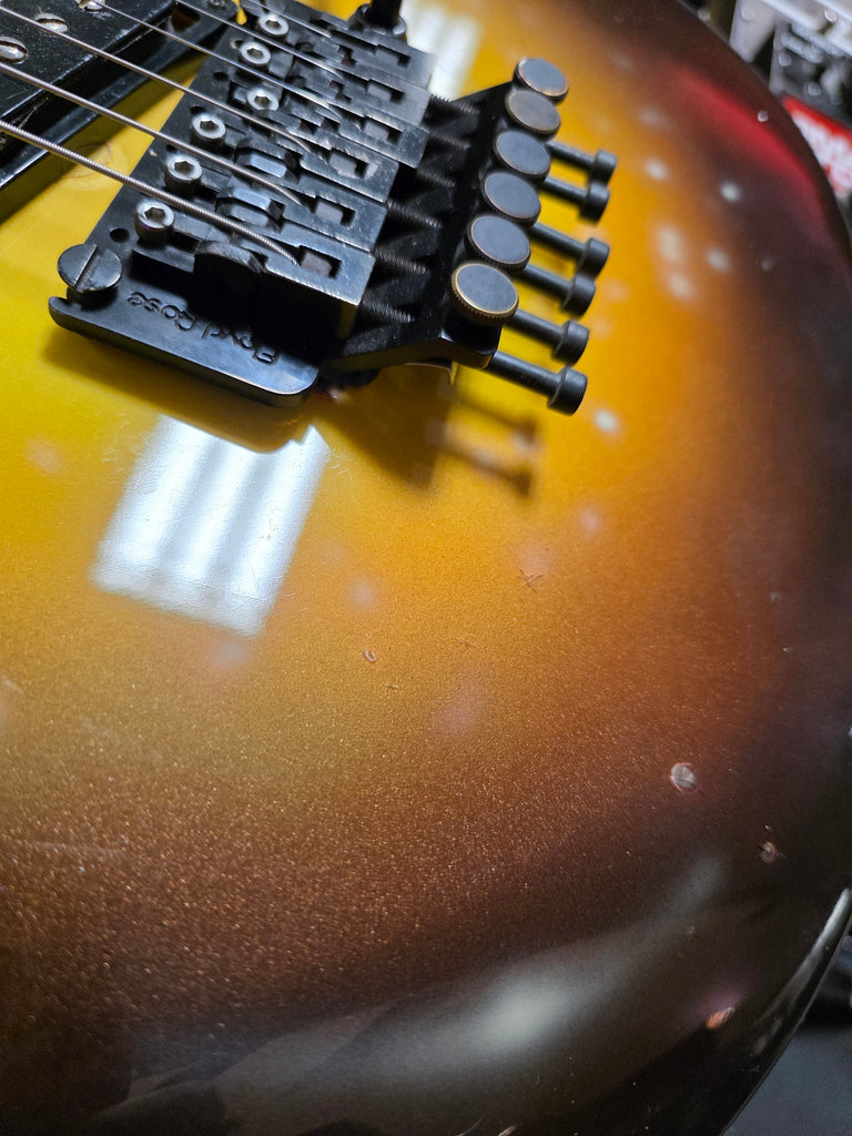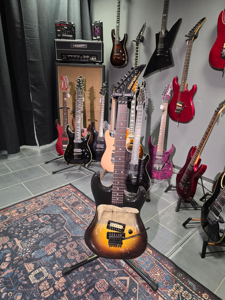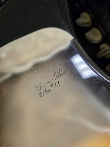 There were 86 guitars made with this Dennis Klein beer graphics, and this is the number 61. Guitar is iin really good condition. Professional stainless steel jumbo refret guarantees years and years of playing hours. Comes in hard shell case. Weight: 3.7 kg.