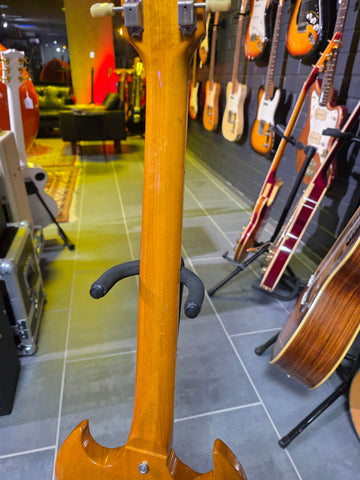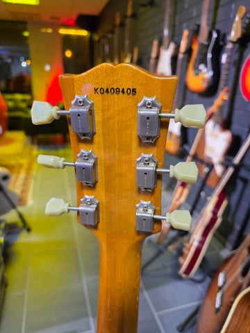 The neck is relatively meaty compared to typical Gibson 60's slim taper. We would describe it as a large C, thickness being between the ´58 and ´59 Gibson neck shapes.