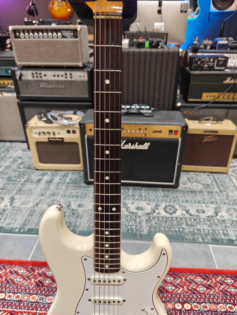 We really love these JV-series Squiers! This is a real closet classic. Fender molded logo case. Weight: 3.5 kg. Pro refret with vintage spec nickel-silver (2x1 mm) made by our own luthier Sanna.
