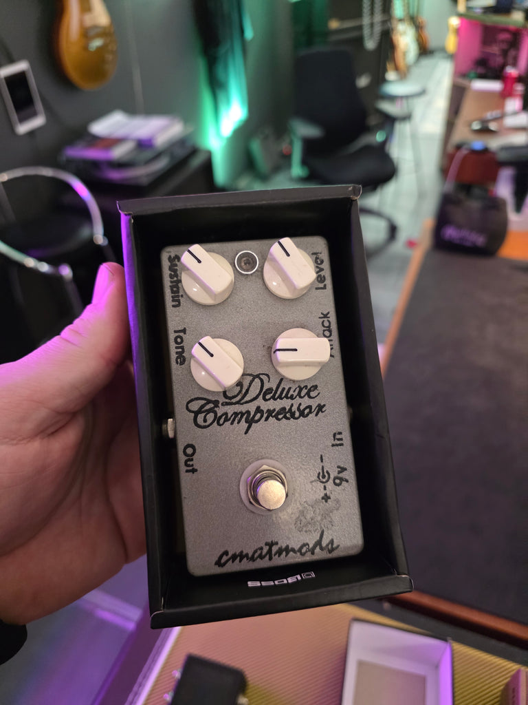 Built on a passion for modding and building pedals, CMAT Mods was founded by Chad Matthews and became a full-time enterprise when he began working with pedal builder Greg Blessing. The Deluxe Compressor takes the CMATMODS Compressor and adds attack and tone knobs for additional control.