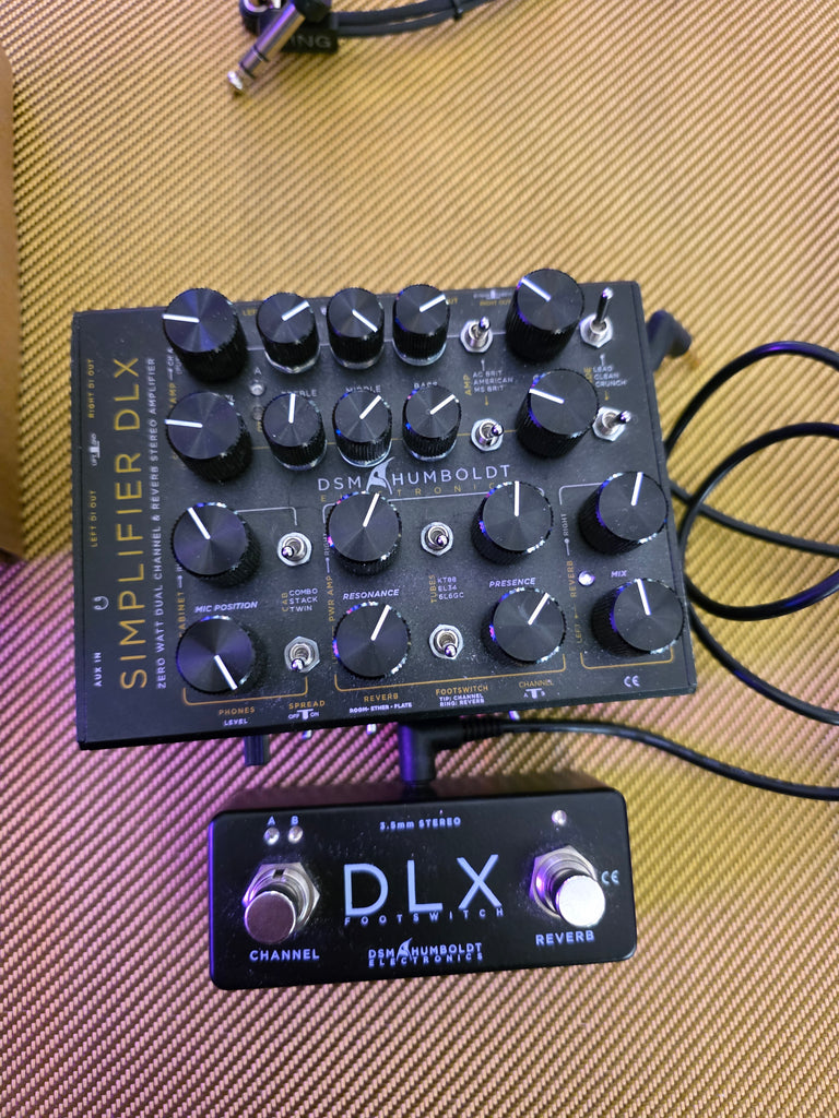 The Simplifier DLX from DSM Humboldt is a stereo preamp and cabinet simulator with endless possibilities. As a large variant of the regular Simplifier, this DLX version has the possibility to connect two guitars at the same time and to provide the most tasteful sounds by means of the buttons and switches.