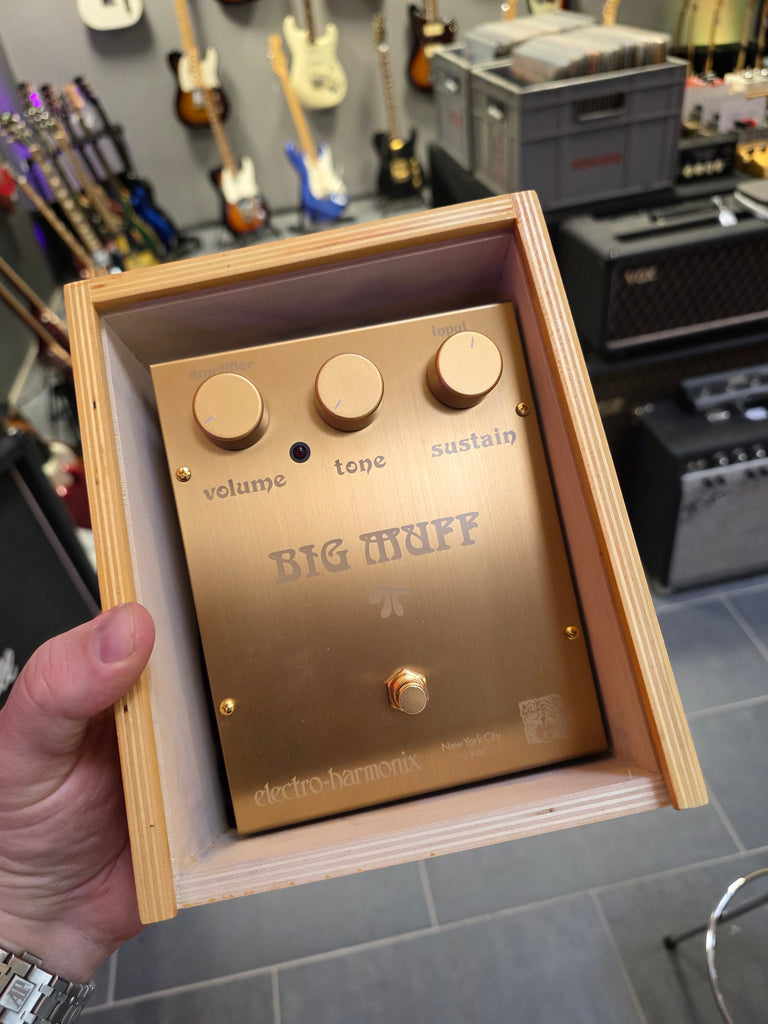 Limited to 555 pedals, this commemorative Muff is inspired by the rich history of the Big Muff Pi® and Electro-Harmonix with design elements that pay homage to the many faces of the Big Muff in a special limited-edition laser-etched golden chassis. For the first time since the 1970s, the Double Anniversary Big Muff Pi will feature the Ram’s Head circuit in a “Big Box” full-sized Big Muff Pi chassis for all of the original mojo and magic craved by the true believers.