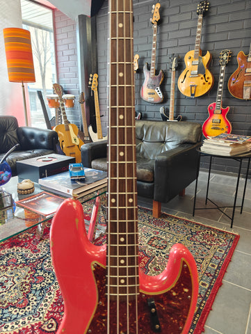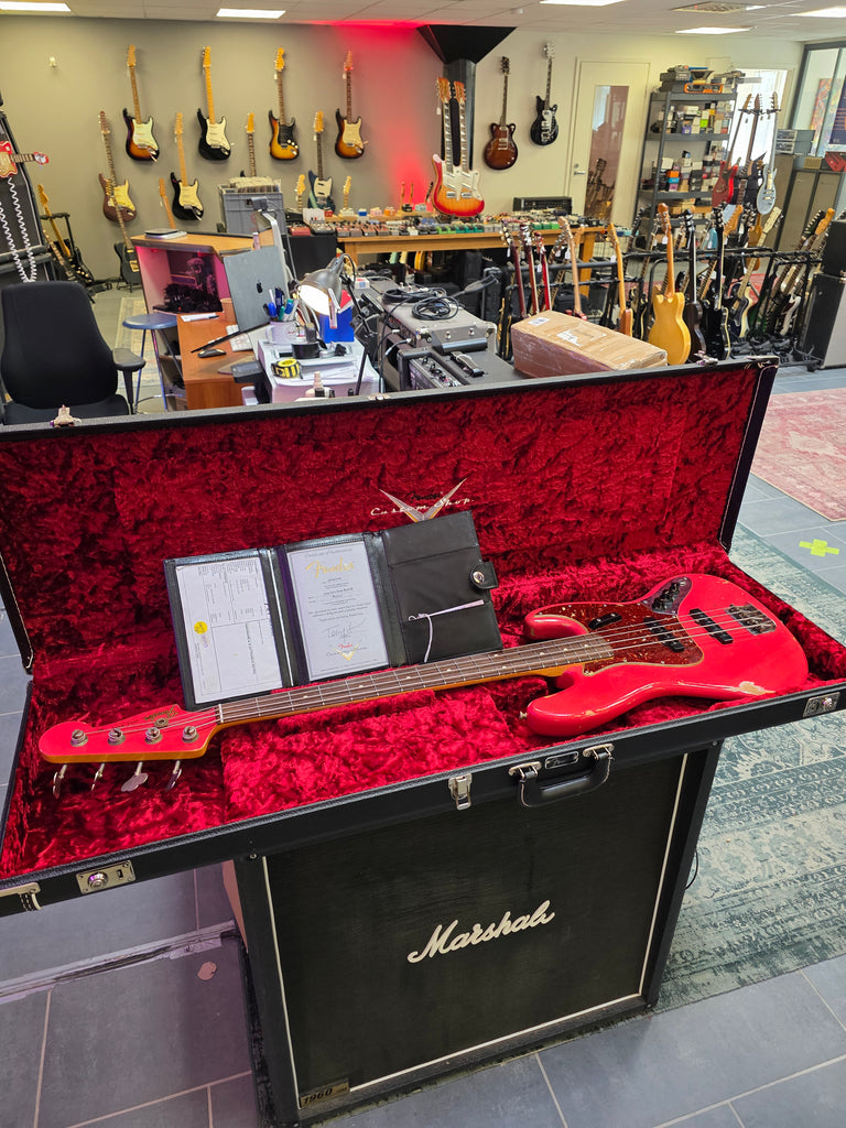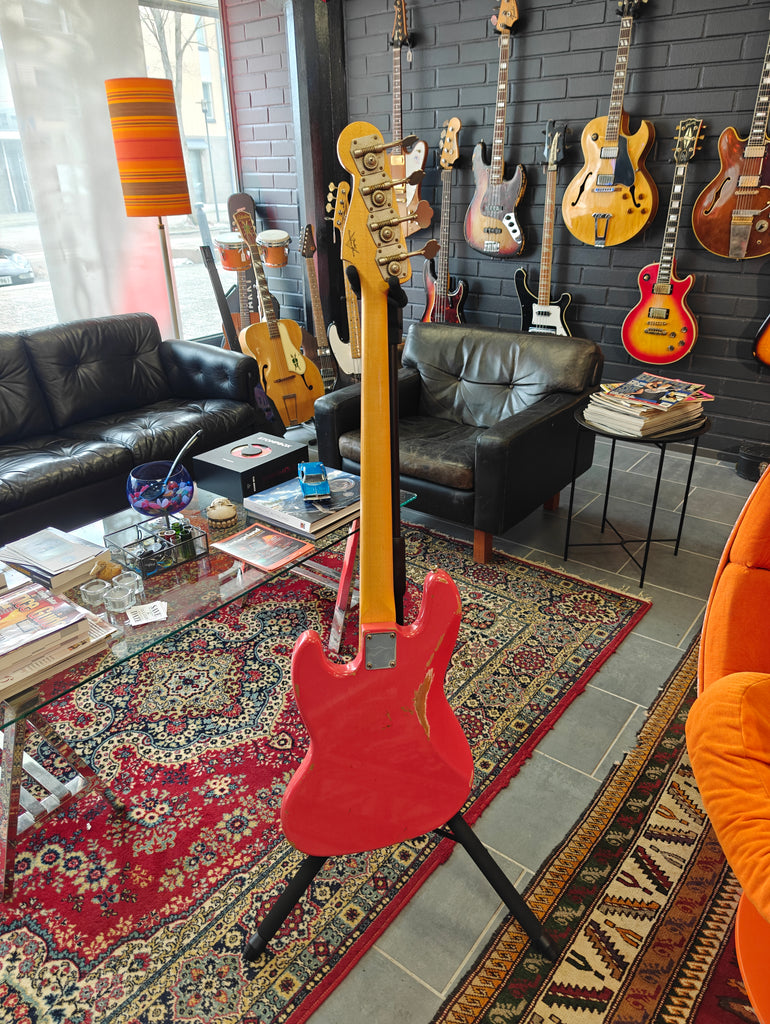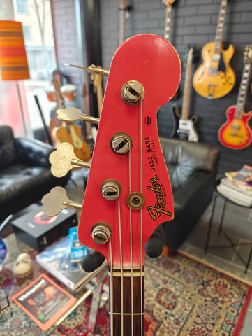 Ladies and gentlebassmen. This must be the finest JB we have ever had. Totally classy fiesta red Jazz Bass with matching headstock. OHSC with case candies and weight: 3.8 kg.