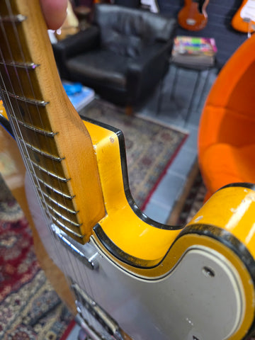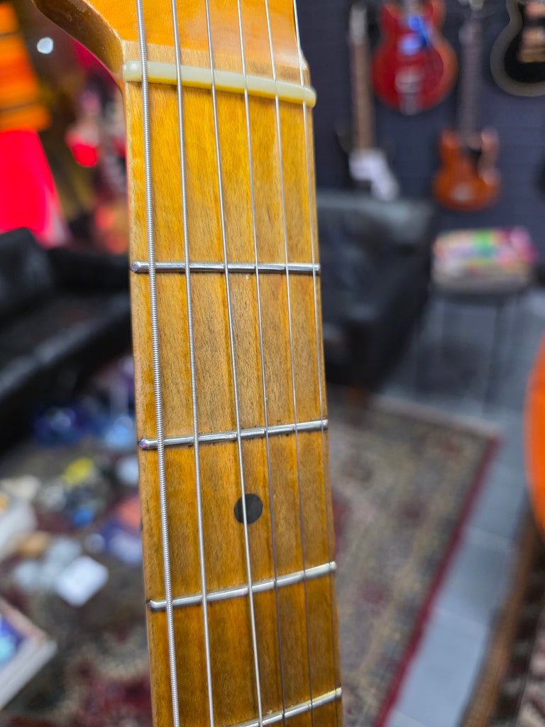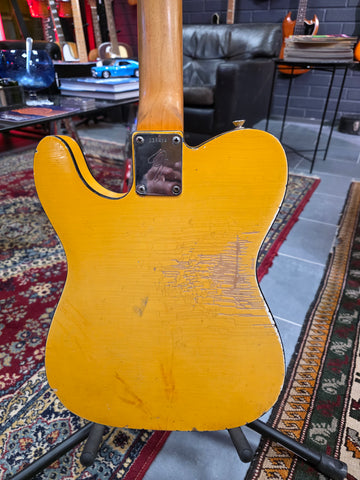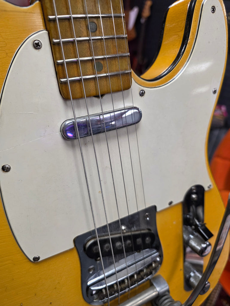 Super rare 1967 Fender Telecaster Custom Tuxedo. Original blonde finish, black binding and factory Bigsby. Guitar has pro refret and supposedly the lacquer has been sanded of from the fretboard. The playing feel is amazing, and the whole neck is worn in nicely.