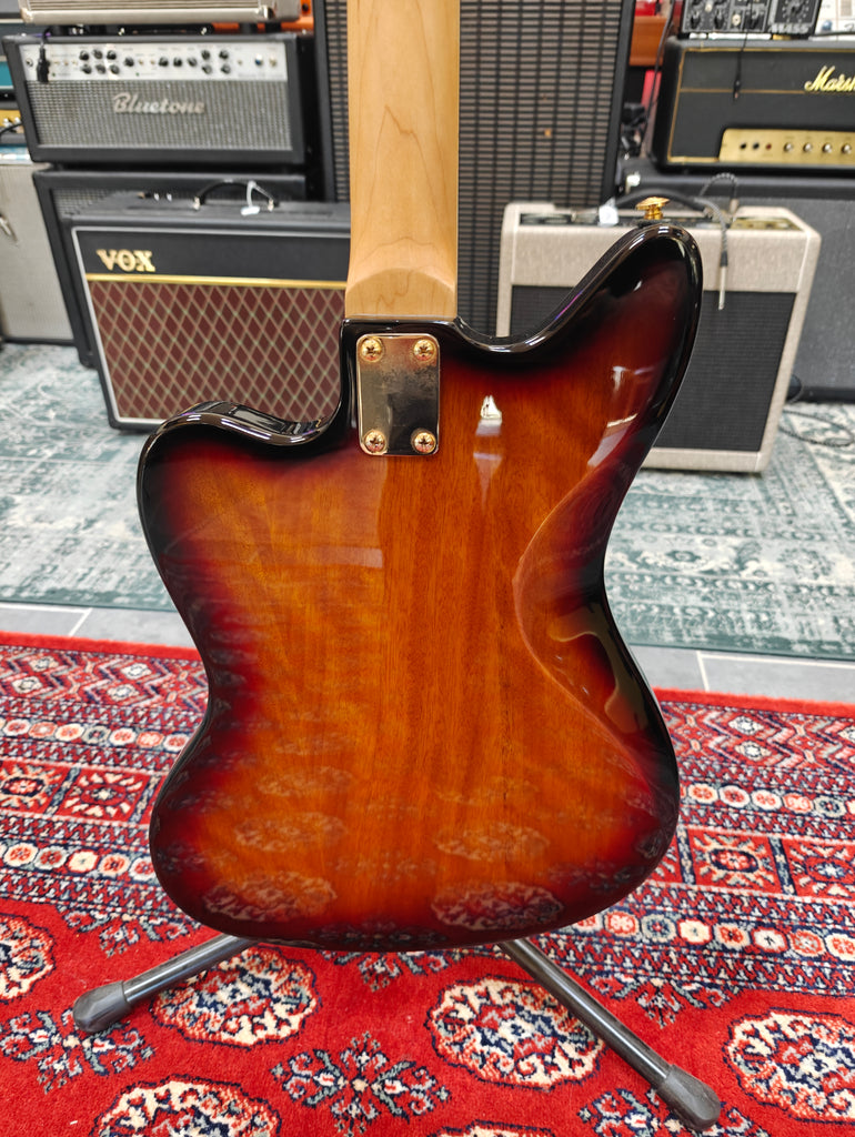 Nice retake on Framus classic Strato Deluxe "jazzmasterish" guitar. Gig bag. Weight: 3.8 kg.