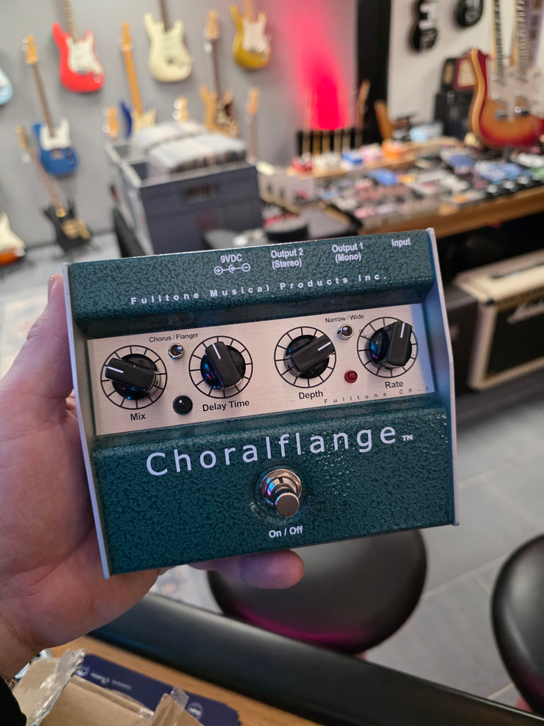 Built with all-analog design, stereo and mono output and controls for mix, delay time, depth and rate, the Fulltone Choralflange brings boutique choral and flanging options together in one compact, sturdy enclosure. Capable of adding one or two octaves to the signal for precise effect sculpting and a large headroom for use in tandem with other pedals, the Choralflange brings room-filling chorus with the twist of a knob.