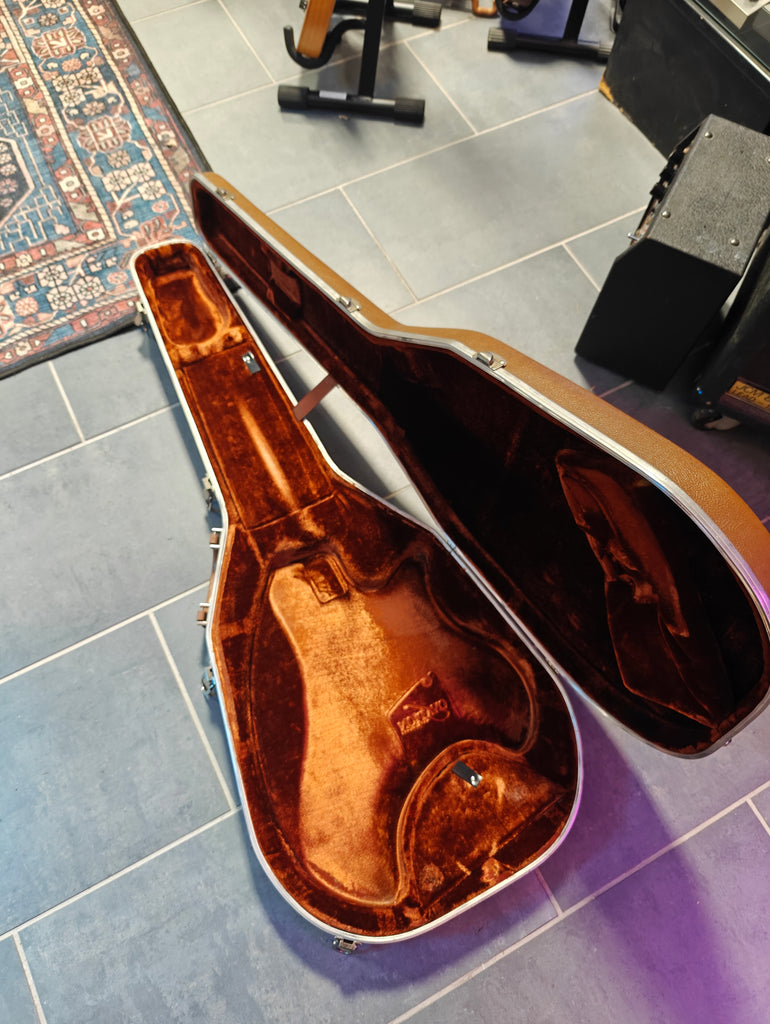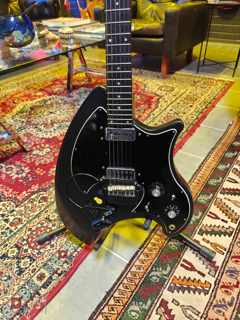 The Breadwinner was part of Ovation's attempt to break into the solidbody electric market in the '70s. This has been fitted with Roland GK-2 Guitar Synthesizer Pickup (removable). OHSC.