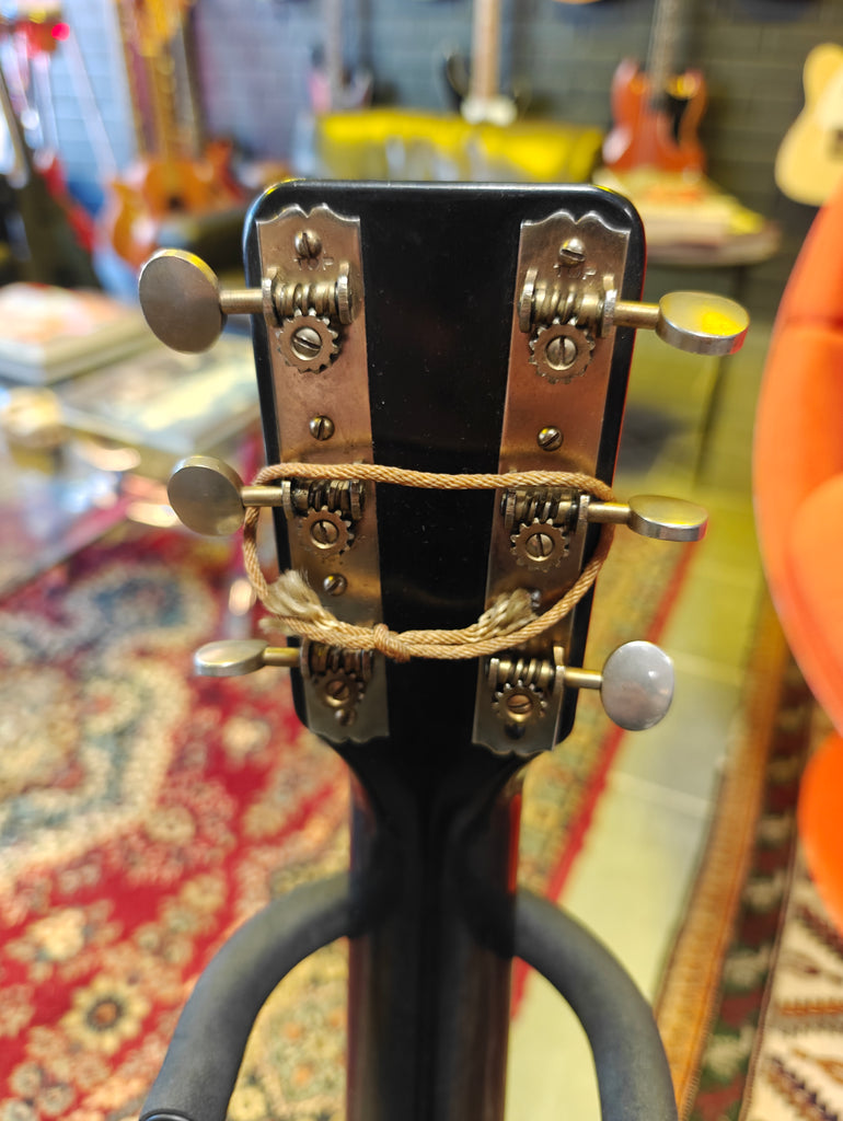 These were originally marketed as Hawaiian guitars. They were fitted with raised nuts. The metal nut comes with the guitar. A very cool relic of the period of earliest international interest in the electric guitar.