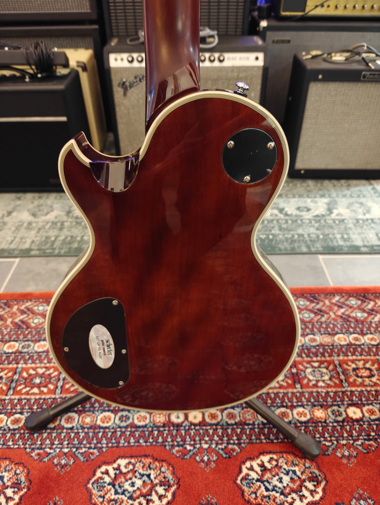 The Schecter Solo II Custom solidbody is the electric guitar for you when you want the look and feel of a classic with modern features that offer a wider tonal range and a more enjoyable playing experience. The Solo II Custom is built from the tonewood combination of a mahogany body and an exotic burl top for their blend of warmth and attack. A set of Schecter USA Pasadena humbuckers is based on the PAF platform. And appointments like coil splitting, a compensated nut for intonation, and locking tuners round out the Solo II Custom's feature set.