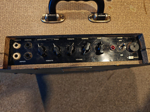 Rare very earöy 1960s Vox AC-10. Recently serviced and working as is should. Legendary sounds from non-modded vintage amp. ID plate seems to be repro.