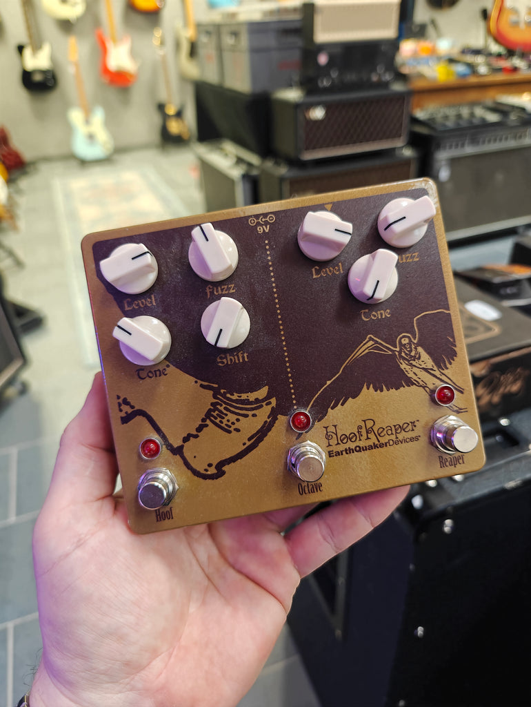 The Hoof Reaper features our popular Hoof® and Tone Reaper™ fuzz pedals in one handy enclosure with the added bonus of an old school analog octave up. It was originally released as a special limited run item back in 2010 and demand was so high that we decided to reintroduce it back into our line. Capable of creating everything from subtle octave-up overtones through crushing octave squalls that simulate exploding stacks of amps. Each effect can be used individually as well as in series but the order of effects is preset for optimum performance.