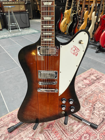 Super cool Firebird V with Seymour Duncan pickups. Usual play wear and strange plug in the back, but that´s about it. OHSC. Weight: 3.4 kg.