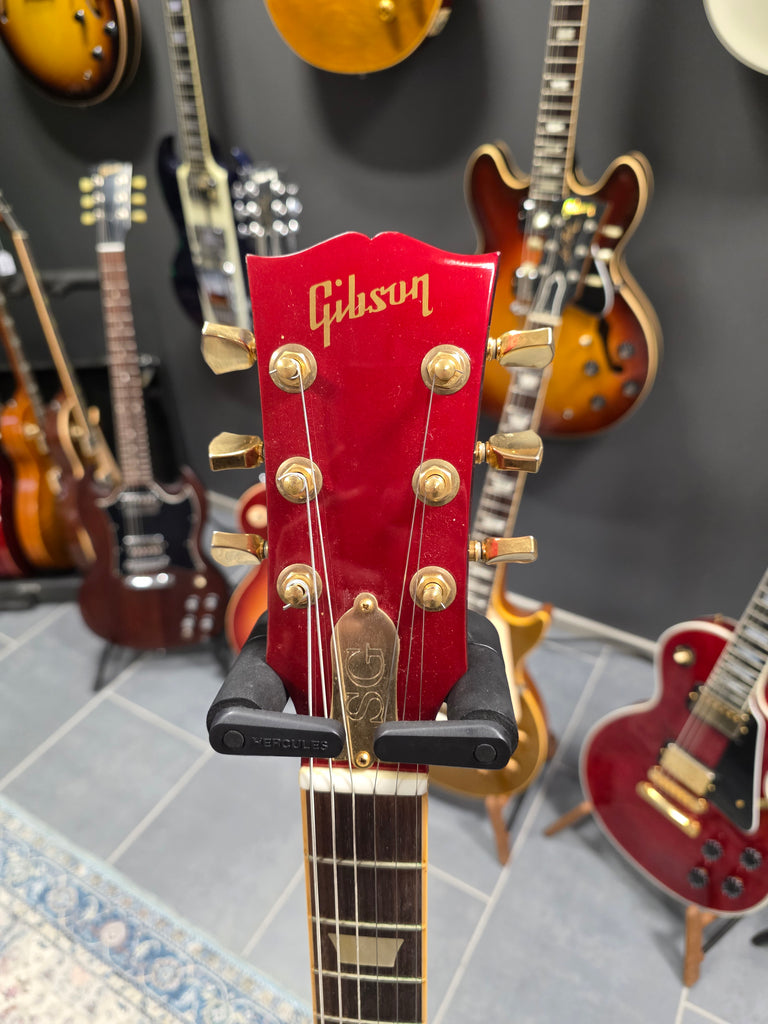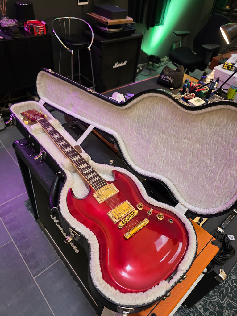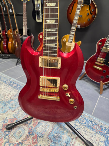 The original Gibson SG Diablo was part of Gibson's Guitar of the Month program. The Metallic Red version was the February 2008 guitar and the Silver version was the December 2008 guitar. The Metallic Red version featured gold hardware, with Keystone Grove tuners, a 24-fret bound fingerboard and two Burstbucker Pro humbuckers.