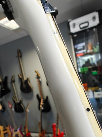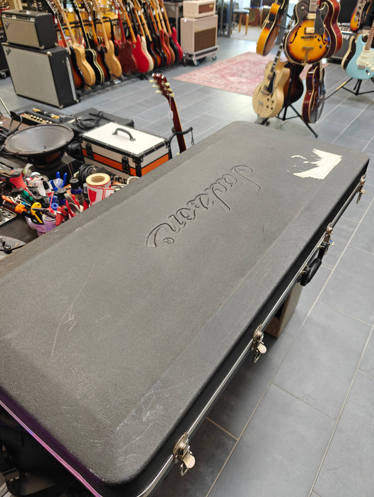 Here we have really sleek USA Jackson from Pre-Fender era. Late 2001. In great playing condition. The has been fixed from the area of first three frets. The neck has been painted to match the other color. Practically invisible, and noticed in the pricing. Comes in original Jackson embedded logo case. Serial U10996.