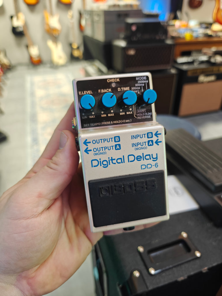 The DD-6 Digital Delay is the first BOSS delay pedal to offer true stereo delay and panning effects. Features include built-in tap tempo capability and a delay/hold time of over 5 seconds (5,200ms). A new Reverse mode makes it easy to get trippy ‘60s and ‘70s-style effects, while the newly designed Warp mode creates radical delay effects on the fly.