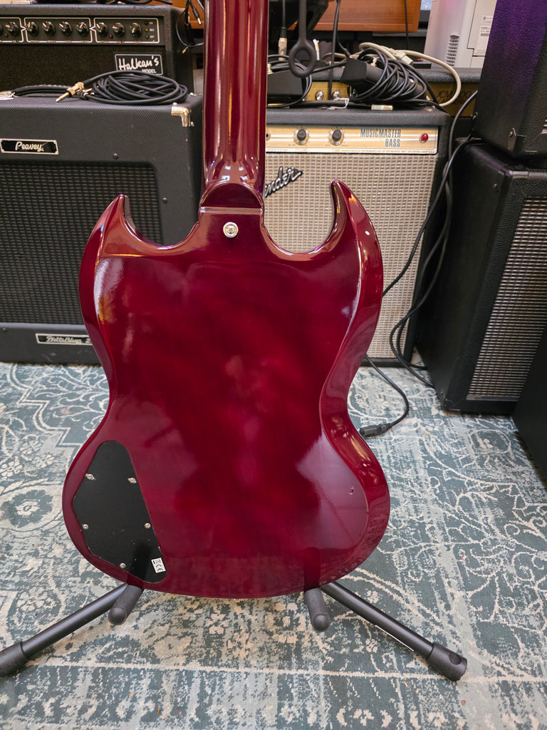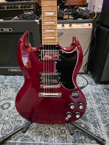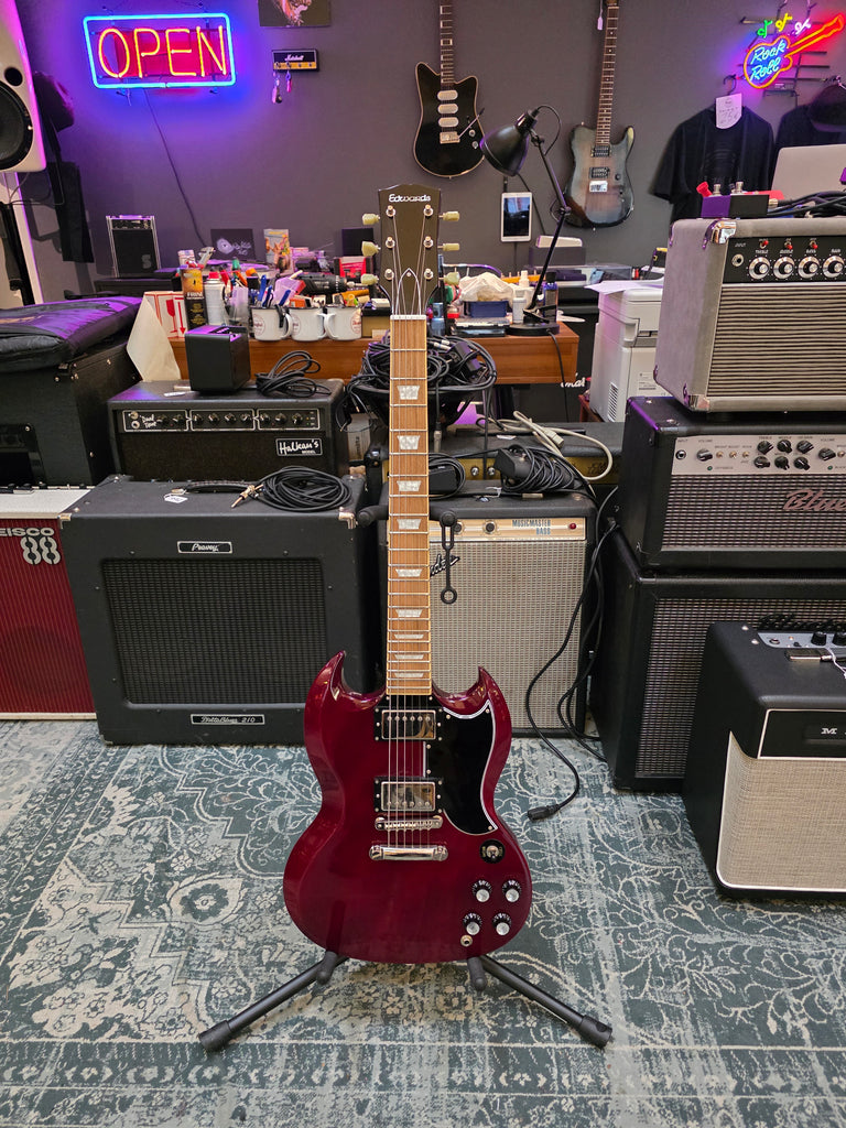 ESP Edwards SG-LTD Cherry is a Japan-made double cut electric guitar with stylish looks and versatile sounds. This Edwards Series instrument is originally intended for Japanese market only, so it’s quite rare outside Japan! The guitar is handmade in Japan, using only high quality tonewoods and parts.