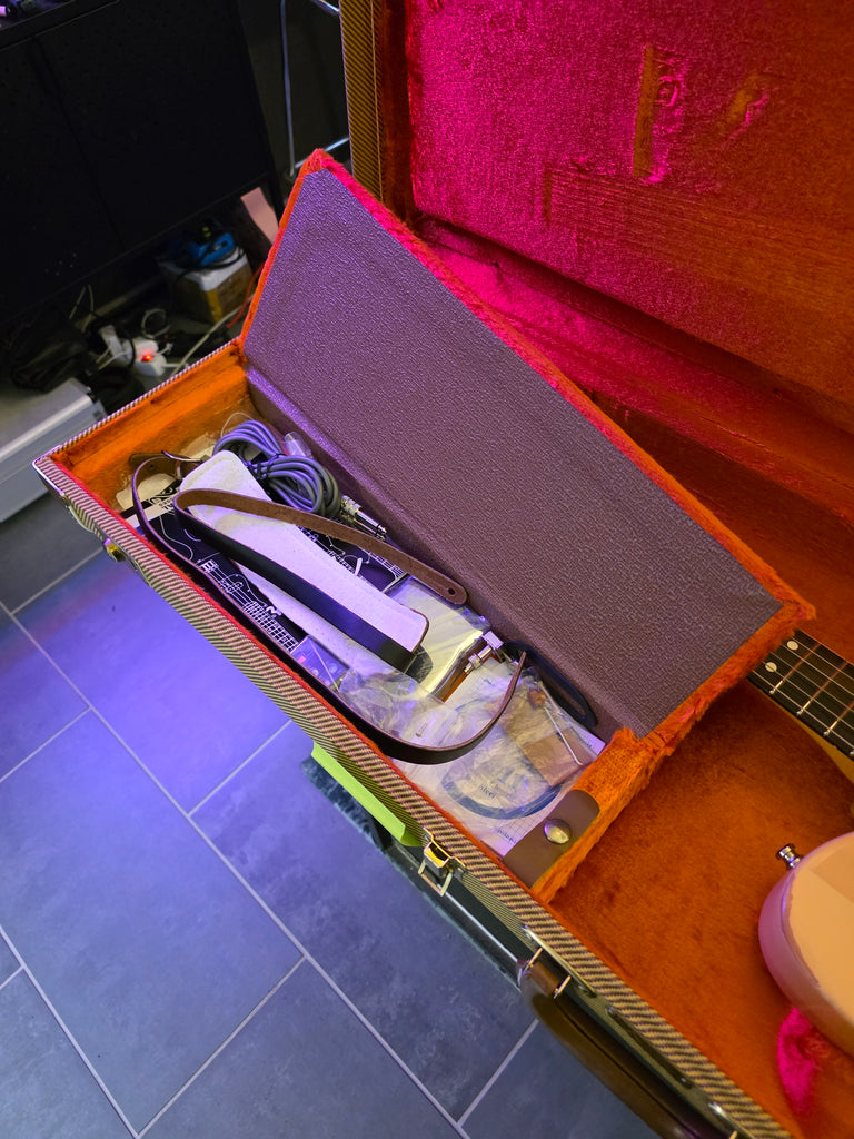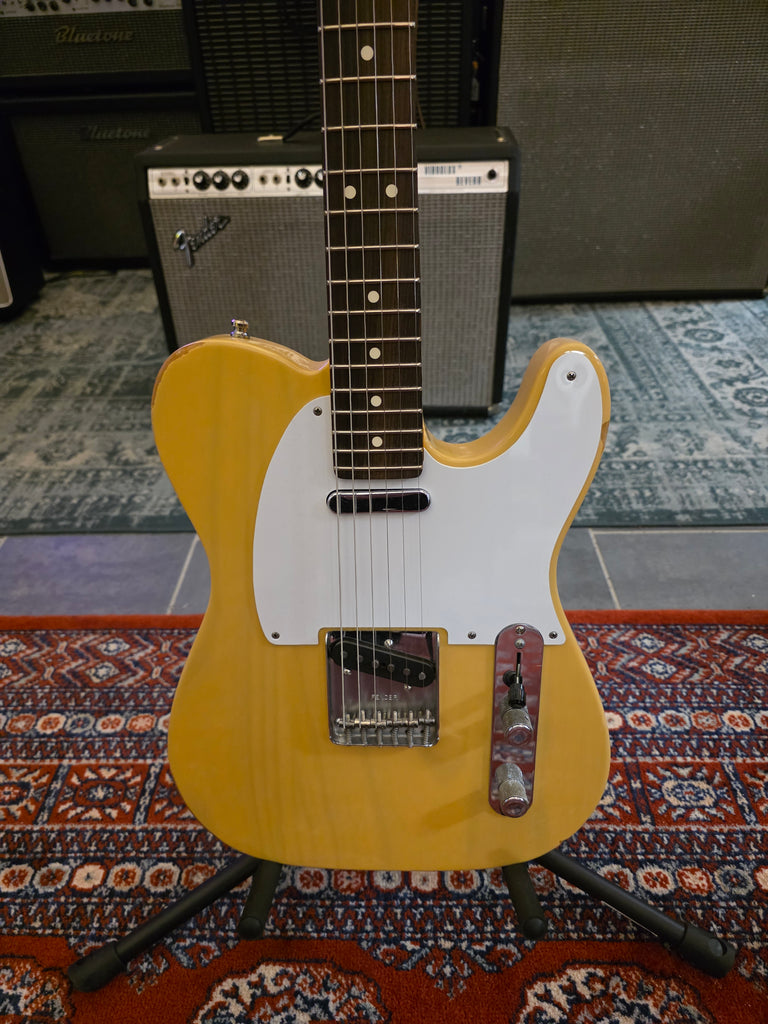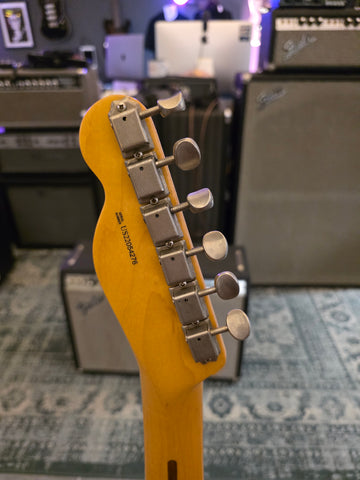 US made Telecaster from 2022. Relic´d by previous owner, but tastefully. Upgraded 6 piece saddle and tuners. Mojotone electronis. OHSC. Weight: 4.3 kg.