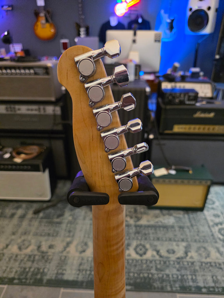 Classic FGW Flying Finn design with HSS and Wilkinson tremolo. HSC. Weight: 3.9 kg.