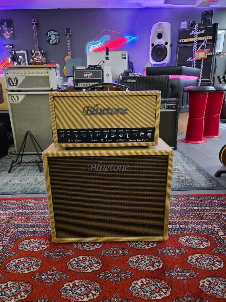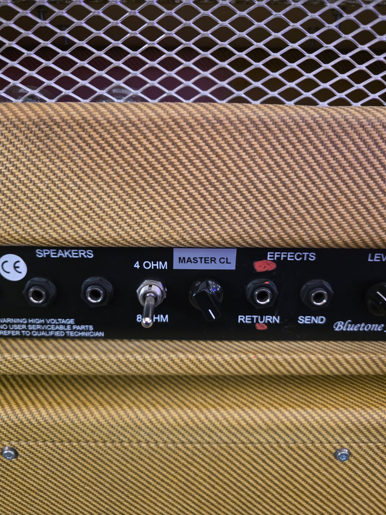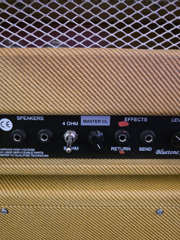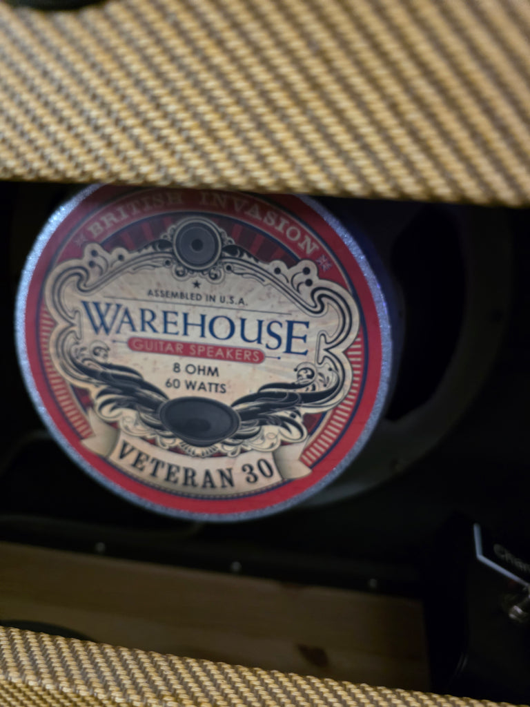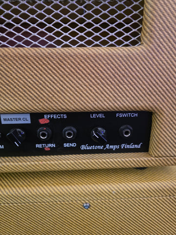 This is a real sleeper. Tweed covered small stack with total firepower. Friedmanesque drive channel and "clean" channel, that sounds like vintage Marshall. Hand made dust covers. The cabinet is open back, but comes with the extra filler piece to make it closed back. Loaded with WGS Veteran 30W 8 Ohm speaker.