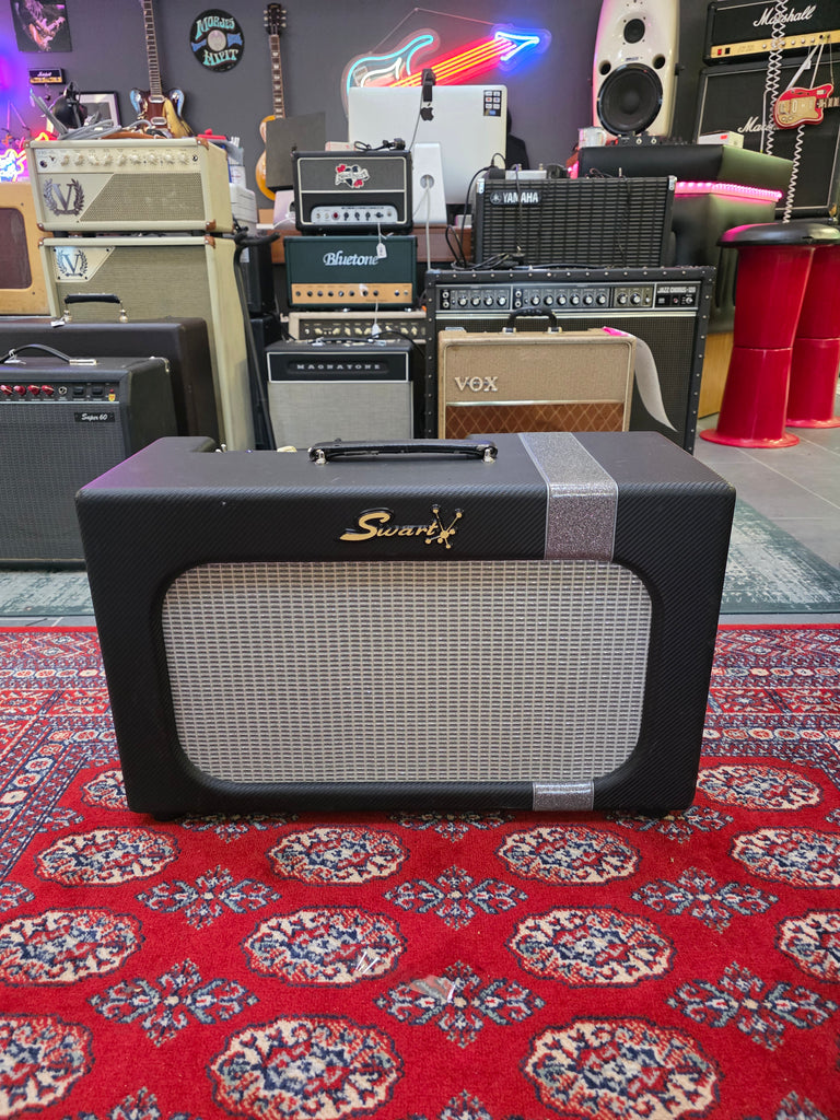 While the MOD 84 had its beginnings within that cool, yet humble, suitcase, it's morphed into something far more. This is the new shop favorite and just such a blast to play! The MOD 84 is a strong 15wpc, powered by two EL-84 with 12AX7 first stage and our favorite 12DW7 for that great Swart reverb. Once again, Michael employs a very simple tone cut that follows our less is more for lower wattage amplifiers. And our new 3 way interactive EQ switch gives the user subtle yet defined control with three settings that actually interacts with the volume and attack. Add in the excellent Swart tube tremolo stage along with our favorite tube rectification, and you have a legitimate rival to the AST but with that bit of EL-84 take.