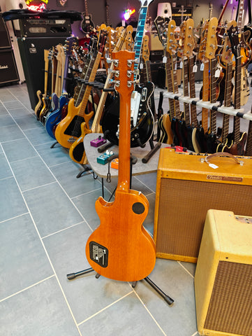 Super beautiful 60s slim necked LP in Trans Amber and flame top to kill for. Guitar has been updated with DiMarzio Illuminator pickups. Original pickups come with the guitar. Weight only: 3.2 kg. OHSC and case candies.